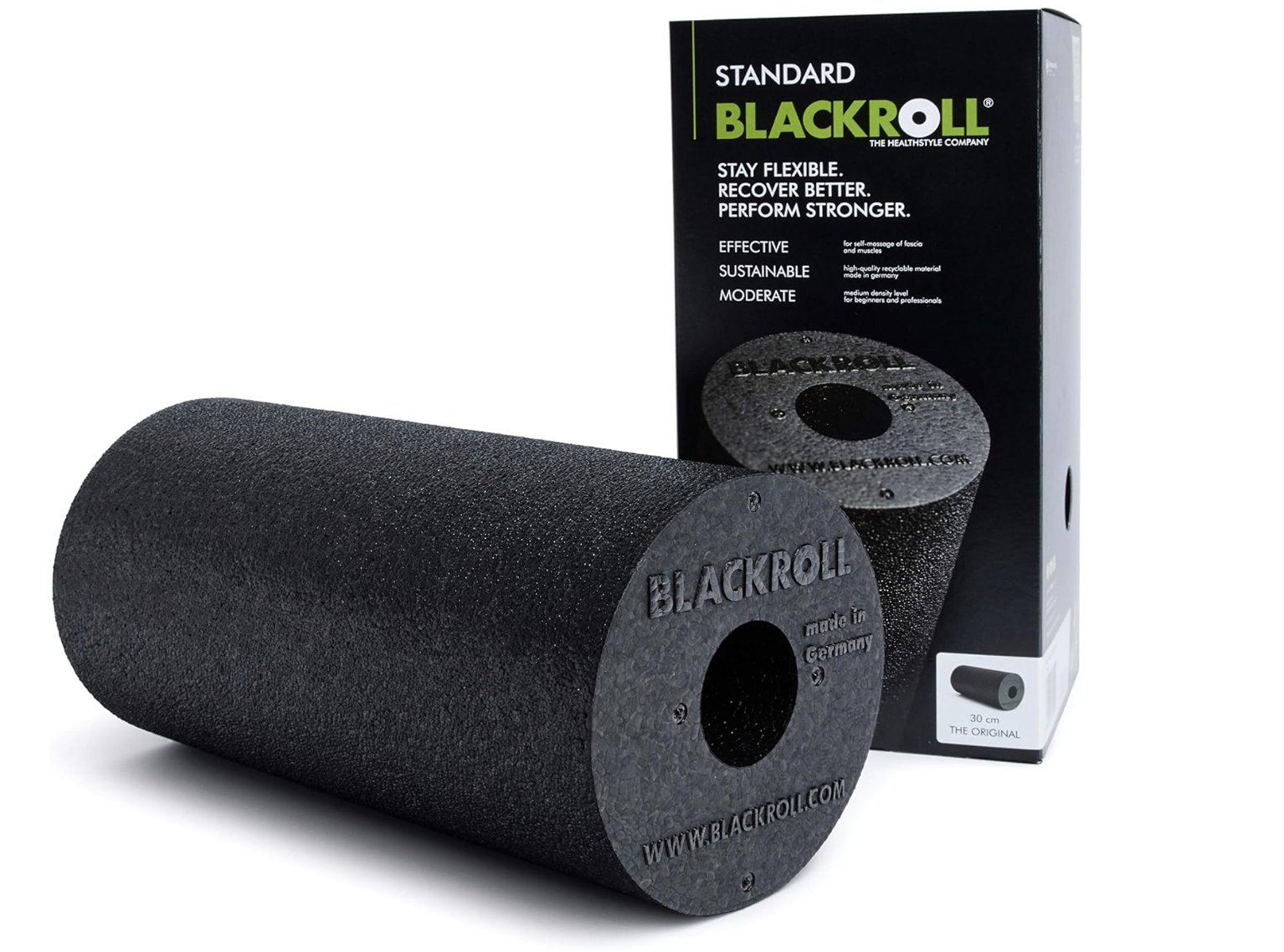 Pour optimiser tes séances de récupération (active ou passive), l'auto-massage avec ce rouleau BLACKROLL est un indispensable pour détendre tes tissus.